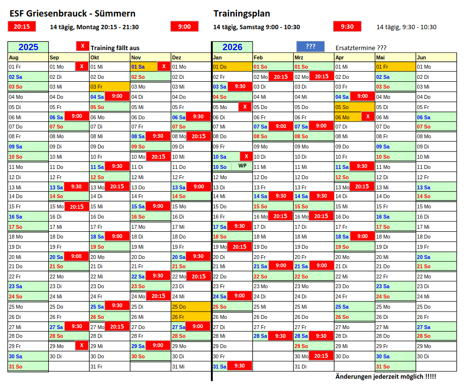 Termine Trainingsplan Saison 2025 / 2026 kommende Termine DatumBegegnungZeit/ErgebnisseAustragungsort 2025-10-04 09:00:124. Oktober 2025 ESF-Training 09:00:129:00Eissporthalle Iserlohn2025-10-11 09:30:4211. Oktober 2025 ESF-Training 09:30:429:30Eissporthalle Iserlohn2025-10-13 20:15:0813. Oktober 2025 ESF-Training 20:15:0820:15Eissporthalle Iserlohn2025-10-18 09:00:3818. Oktober 2025 ESF-Training 09:00:389:00Eissporthalle Iserlohn2025-10-25 09:30:0725. Oktober 2025 ESF-Training 09:30:079:30Eissporthalle Iserlohn2025-10-27 20:15:0127. Oktober 2025 ESF-Training 20:15:0120:15Eissporthalle Iserlohn2025-11-08 09:30:288. November 2025 ESF-Training 09:30:289:30Eissporthalle Iserlohn2025-11-10 20:15:0110. November 2025 ESF-Training 20:15:0120:15Eissporthalle Iserlohn2025-11-15 09:00:3315. November 2025 ESF-Training 09:00:339:00Eissporthalle Iserlohn2025-11-22 09:30:0122. November 2025 ESF-Training 09:30:019:30Eissporthalle Iserlohn2025-11-24 20:15:5624. November 2025 ESF-Training 20:15:5620:15Eissporthalle Iserlohn2025-11-29 09:00:2829. November 2025 ESF-Training 09:00:289:00Eissporthalle Iserlohn2025-12-06 09:30:546. Dezember 2025 ESF-Training 09:30:549:30Eissporthalle Iserlohn2025-12-08 20:15:258. Dezember 2025 ESF-Training 20:15:2520:15Eissporthalle Iserlohn2025-12-13 09:00:5713. Dezember 2025 ESF-Training 09:00:579:00Eissporthalle Iserlohn2025-12-20 09:30:2020. Dezember 2025 ESF-Training 09:30:209:30Eissporthalle Iserlohn2025-12-22 20:15:5622. Dezember 2025 ESF-Training 20:15:5620:15Eissporthalle Iserlohn2025-12-27 09:00:2927. Dezember 2025 ESF-Training 09:00:299:00Eissporthalle Iserlohn2026-01-03 09:30:383. Januar 2026 ESF-Training 09:30:389:30Eissporthalle Iserlohn2026-01-17 09:30:3617. Januar 2026 ESF-Training 09:30:369:30Eissporthalle Iserlohn2026-01-19 20:15:4019. Januar 2026 ESF-Training 20:15:4020:15Eissporthalle Iserlohn2026-01-24 09:00:1524. Januar 2026 ESF-Training 09:00:159:00Eissporthalle Iserlohn2026-01-31 09:30:4431. Januar 2026 ESF-Training 09:30:449:30Eissporthalle Iserlohn2026-02-02 20:15:112. Februar 2026 ESF-Training 20:15:1120:15Eissporthalle Iserlohn2026-02-07 09:00:417. Februar 2026 ESF-Training 09:00:419:00Eissporthalle Iserlohn2026-02-14 09:30:0514. Februar 2026 ESF-Training 09:30:059:30Eissporthalle Iserlohn2026-02-16 20:15:4516. Februar 2026 ESF-Training 20:15:4520:15Eissporthalle Iserlohn2026-02-21 09:00:3521. Februar 2026 ESF-Training 09:00:359:00Eissporthalle Iserlohn2026-02-28 09:30:0128. Februar 2026 ESF-Training 09:30:019:30Eissporthalle Iserlohn2026-03-02 20:15:282. März 2026 ESF-Training 20:15:2820:15Eissporthalle Iserlohn2026-03-07 09:00:587. März 2026 ESF-Training 09:00:589:00Eissporthalle Iserlohn2026-03-14 09:30:1814. März 2026 ESF-Training 09:30:189:30Eissporthalle Iserlohn2026-03-16 20:15:4716. März 2026 ESF-Training 20:15:4720:15Eissporthalle Iserlohn2026-03-21 09:00:1621. März 2026 ESF-Training 09:00:169:00Eissporthalle Iserlohn2026-03-28 09:30:0128. März 2026 ESF-Training 09:30:019:30Eissporthalle Iserlohn2026-03-30 20:15:2830. März 2026 ESF-Training 20:15:2820:15Eissporthalle Iserlohn2026-04-04 09:00:014. April 2026 ESF-Training 09:00:019:00Eissporthalle Iserlohn2026-04-11 09:30:3211. April 2026 ESF-Training 09:30:329:30Eissporthalle Iserlohn2026-04-13 20:15:0313. April 2026 ESF-Training 20:15:0320:15Eissporthalle Iserlohn2026-04-18 09:00:3218. April 2026 ESF-Training 09:00:329:00Eissporthalle Iserlohn